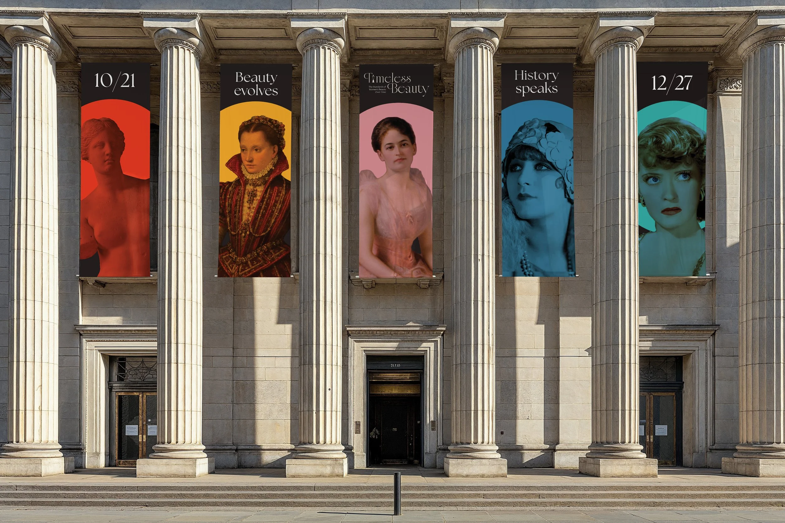 I designed the full visual system for the exhibition, including pamphlets, environmental advertising, wayfinding, and motion graphics. Using curated artworks from distinct time periods, the exhibition highlights physical traits such as body proportions, posture, and silhouette to reveal how ideals of beauty and identity are constructed and redefined over time.