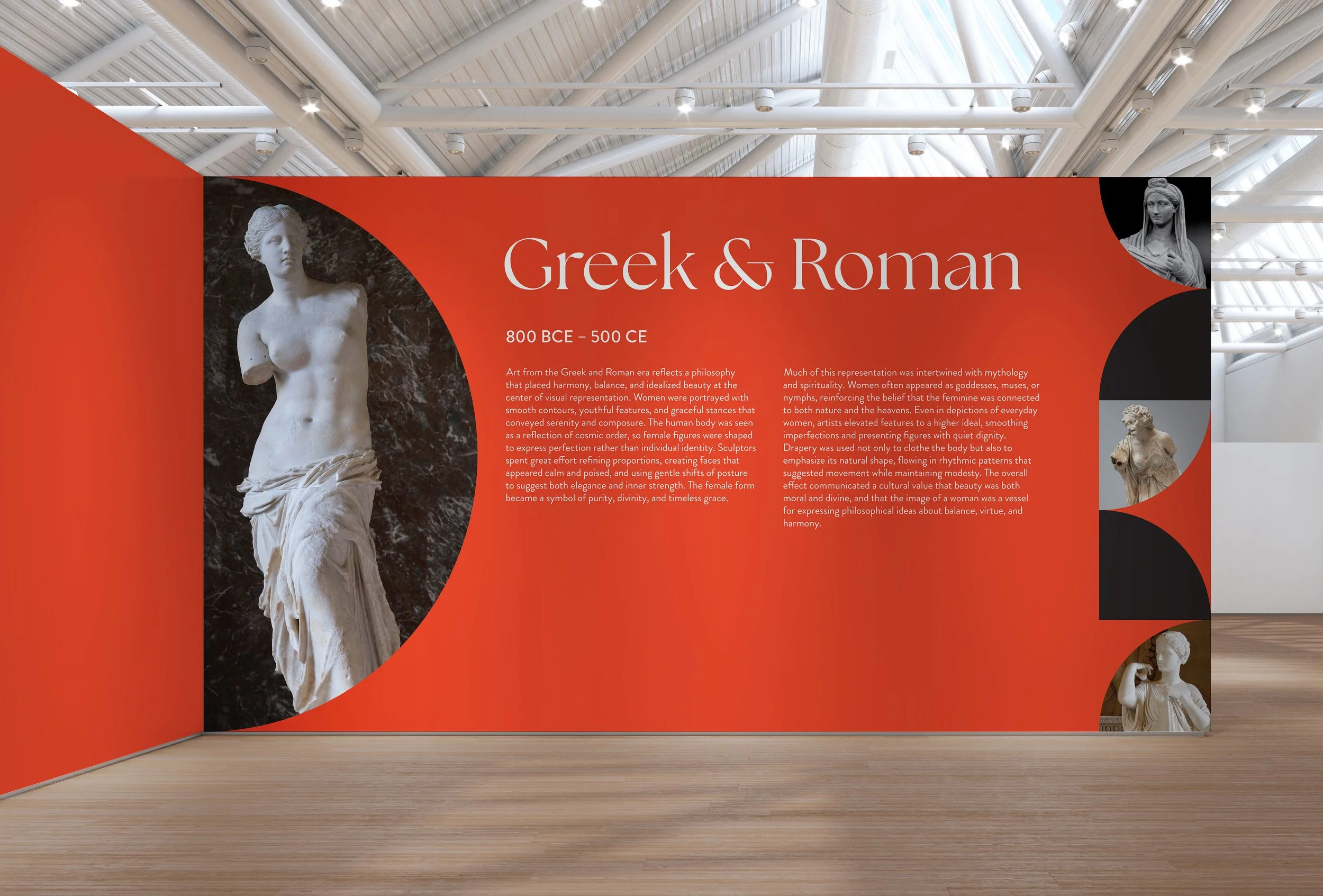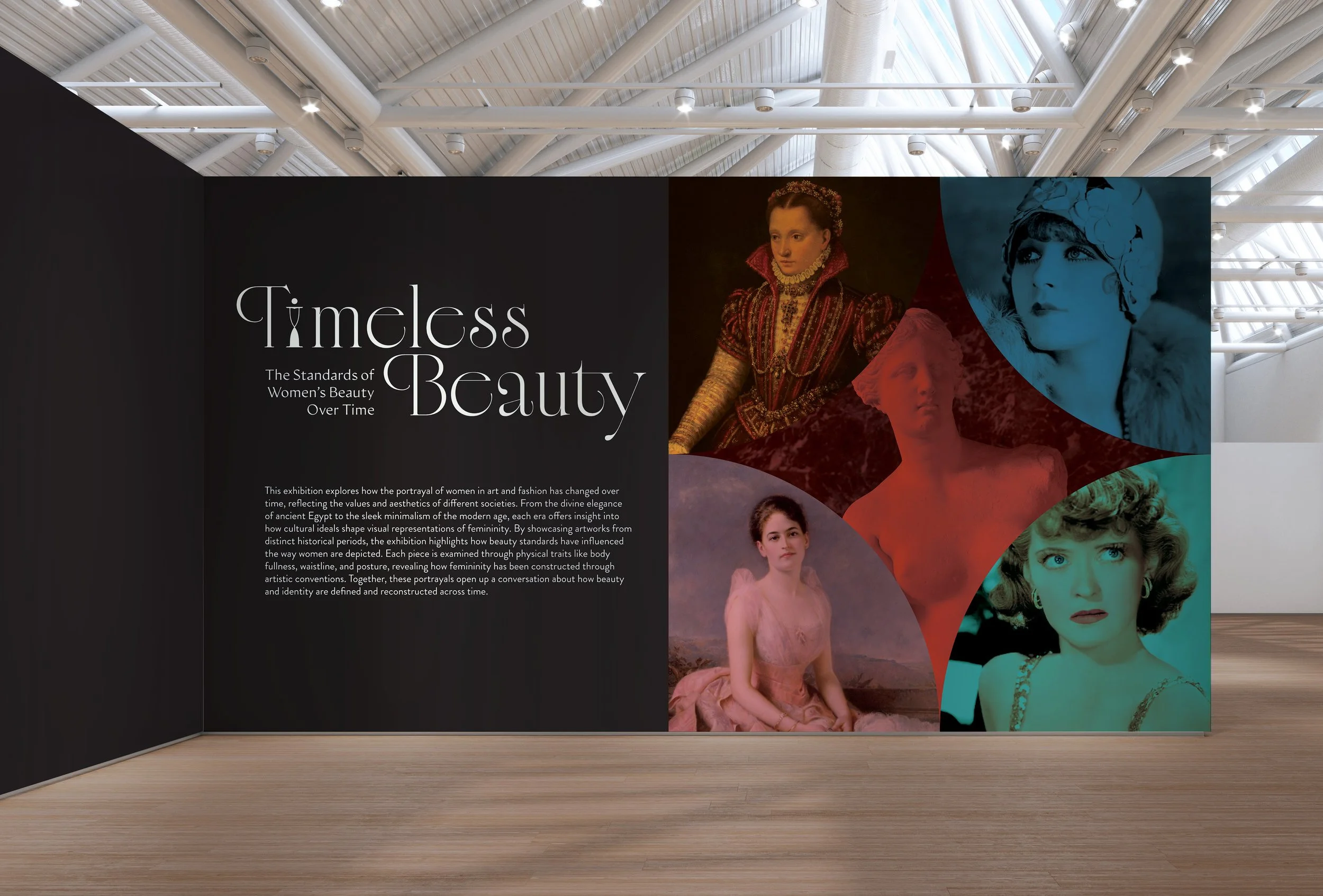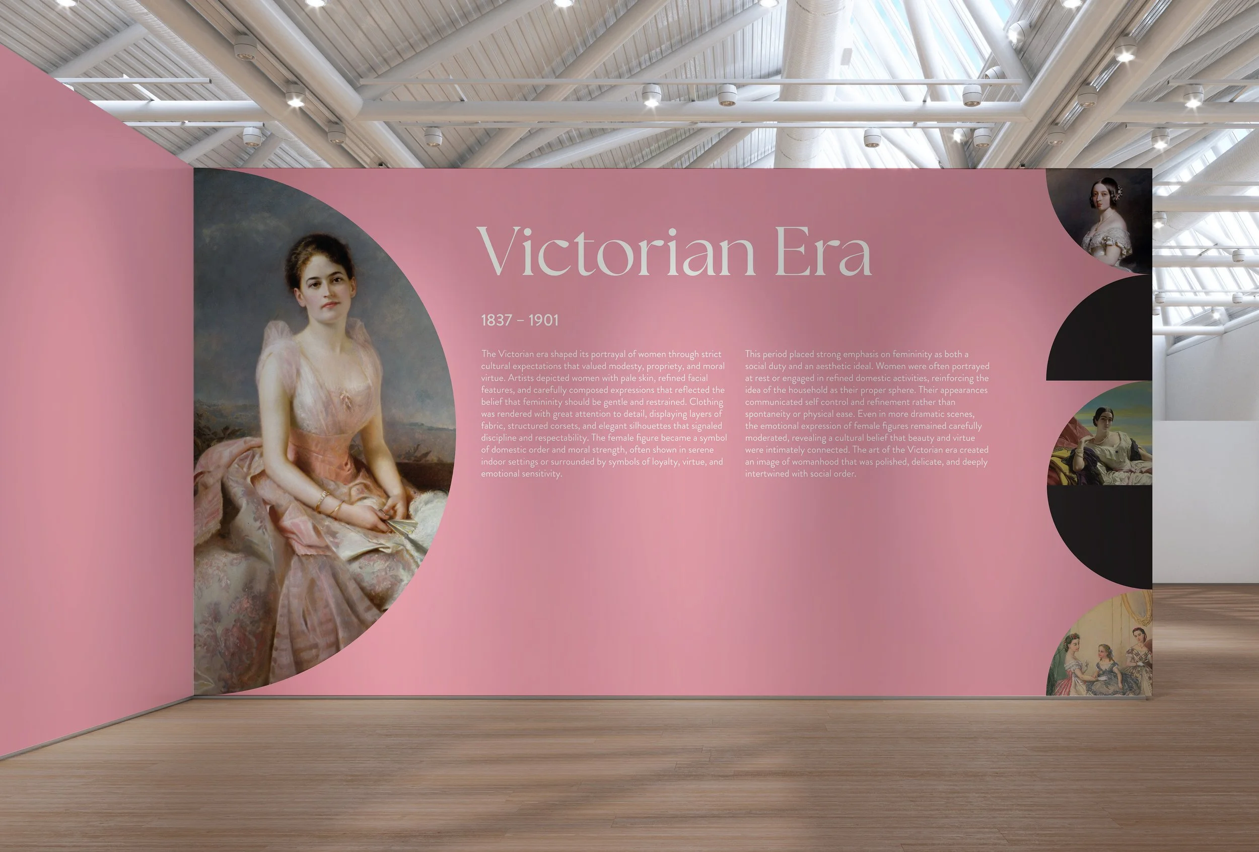 This exhibition project explores how the portrayal of women in art and fashion has evolved across different historical periods. I developed the exhibition concept to examine how cultural values and beauty standards shape visual representations of femininity from ancient civilizations to the modern era.